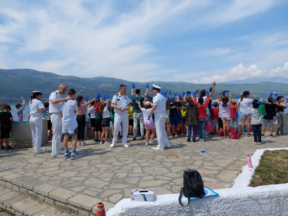 Στην συνέχεια, μετέβησαν όλοι μαζί στην παραλία έμπροσθεν του Λιμεναρχείου Σάμου, όπου πραγματοποιήθηκε προσομοίωση καθαρισμού της ακτής.