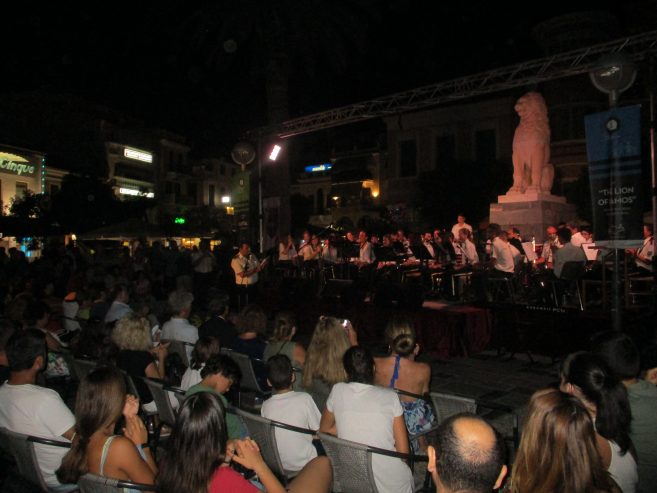 Οι παρευρισκόμενοι είχαν την ευκαιρία να απολαύσουν γνωστές μελωδίες και τραγούδια καταξιωμένων δημιουργών, με φόντο το εμβληματικό  άγαλμα του λιονταριού που δεσπόζει στο κέντρο της πλατείας. Την συναυλία παρακολούθησε και ο δήμαρχος Σάμου, κ. Μιχάλης Αγγελόπουλος, δημοτικοί και κοινοτικοί σύμβουλοι.