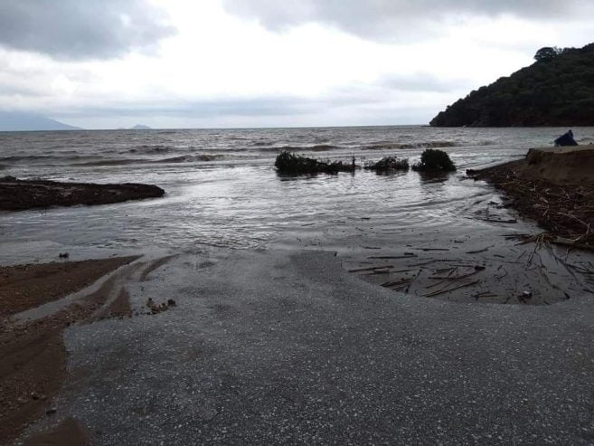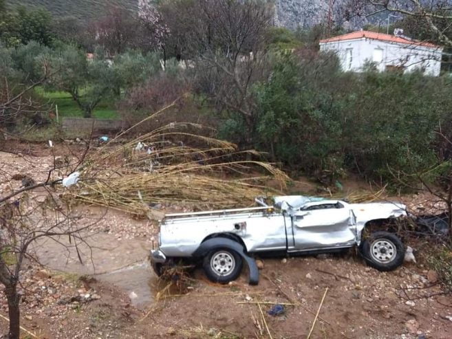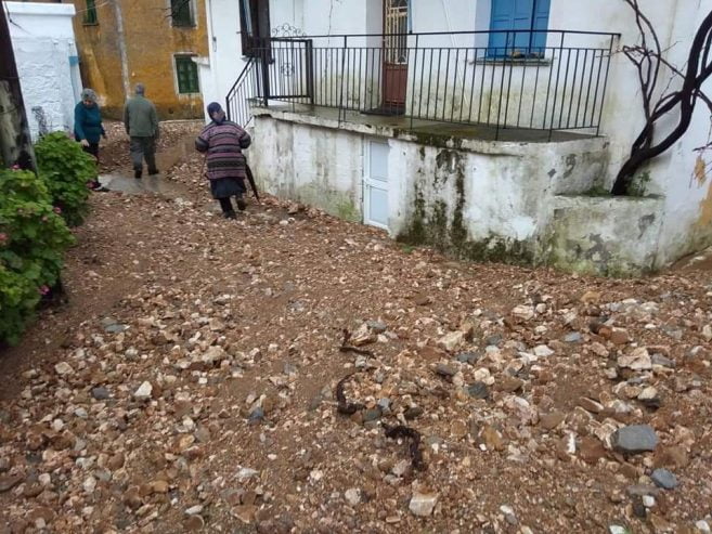 Πέτρες, ξύλα και λάσπη γέμισαν την περιοχή, ενώ δεν έλειψαν και οι ζημιές σε οχήματα.