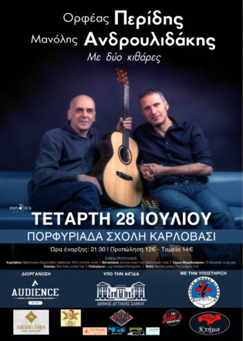 «Με δύο Κιθάρες» οι Ορφέας Περίδης – Μανόλης Ανδρουλιδάκης 28/7 στο Καρλόβασι .Ώρα έναρξης 21.30.