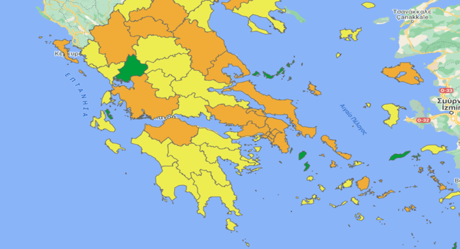 Η Σάμος βρίσκεται στον επιδημιολογικό χάρτη στο κίτρινο, ενώ η Ικαρία στο πράσινο
