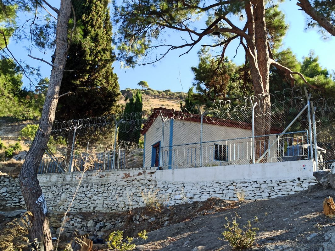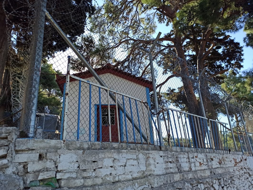 Με κονσερτίνα η περίφραξη του παρεκκλησίου των Αγίων Κωνσταντίνου και Ελένης, το οποίο βρίσκεται πέριξ του ΚΥΤ Σάμου, σε μια προσπάθεια να αποτραπούν οι συχνοί βανδαλισμοί που δέχεται το παρεκκλήσι.