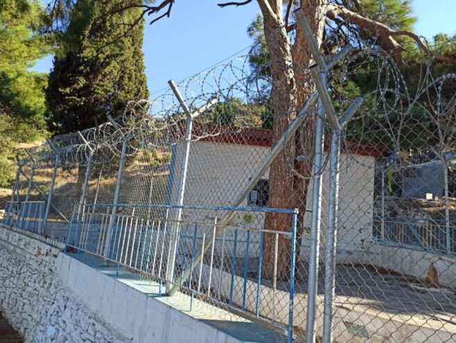 Με κονσερτίνα η περίφραξη του παρεκκλησίου των Αγίων Κωνσταντίνου και Ελένης, το οποίο βρίσκεται πέριξ του ΚΥΤ Σάμου, σε μια προσπάθεια να αποτραπούν οι συχνοί βανδαλισμοί που δέχεται το παρεκκλήσι.