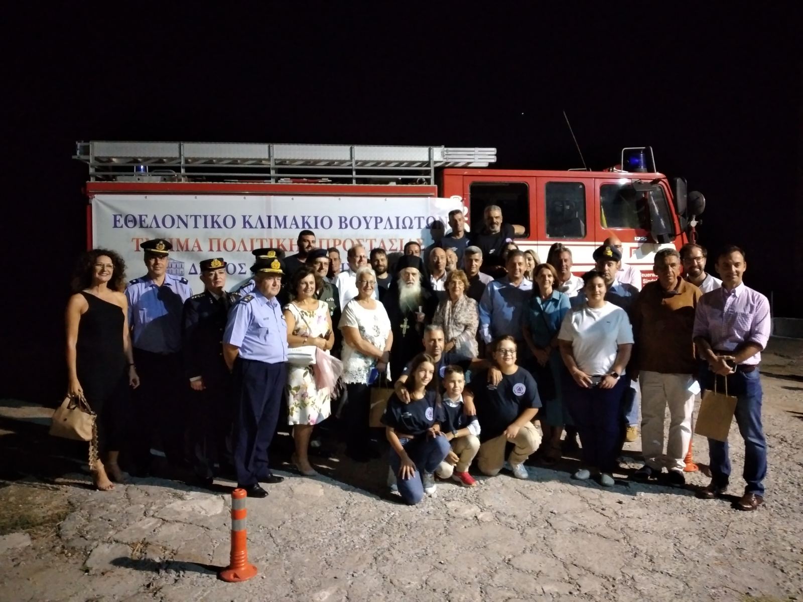 Ακολούθως ο Σεβασμιώτατος τίμησε την απλή και συγκινητική εκδήλωση του Δήμου Ανατολικής Σάμου ο οποίος και παρέλαβε 2 Πυροσβεστικά οχήματα τα οποία δωρήθηκαν στα Πυροσβεστικά κλιμάκια Βουρλιωτών και Πυθαγορείου από το Δήμο Siedelfingen της Γερμανίας και αφού ευχαρίστησε και συνεχάρη για την μεγάλη αυτή δωρεά τον Δήμαρχο του Δήμου Siedelfingen, του προσέφερε την εικόνα της Παναγίας της Βροντιανής και την Ιστορία των Ιερών Μονών της Σάμου στην Γερμανική γλώσσα.