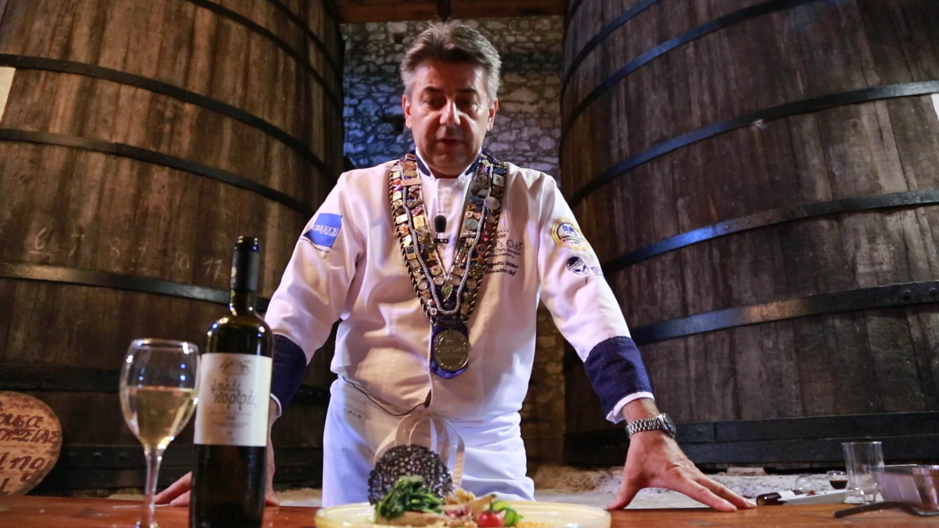 • Κατσικίσια πλάτη μαριναρισμένη στο «Μοσχάτο Άσπρο» σαμιώτικο κρασί  και γεμισμένη με αρωματικά και ρύζι, συνδυασμένη με το εκπληκτικό λευκό ξηρό «Ψηλές Κορφές» του ΕΟΣ Σάμου.