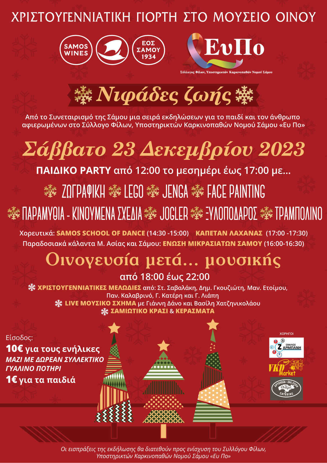 Από το Συνεταιρισμό της Σάμου μια σειρά εκδηλώσεων για το παιδί και τον άνθρωπο! Σάββατο, 23 Δεκεμβρίου, Παιδικό party (από τις 12 το μεσημέρι έως τις 5 το απόγευμα) με Ζωγραφική, Lego, Jenga, Παραμύθια – Κινούμενα Σχέδια, Face Painting, Jogler, Ξυλοπόδαρος, Τραμπολίνο και τον Αη Βασίλη με τα δωράκια του.