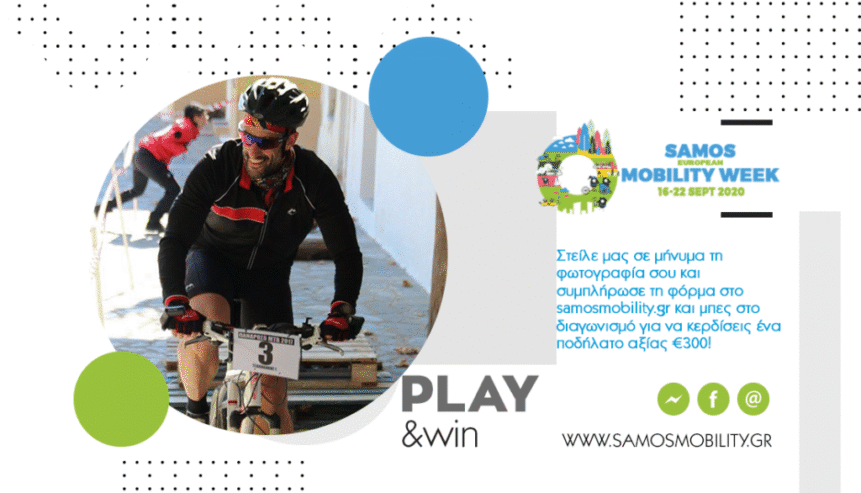 Καθόλη τη διάρκεια της Εβδομάδας θα διενεργείτε διαγωνισμός selfie με θέμα «Πράσινη μετακίνηση χωρίς ρύπους» μέσω της ιστοδελίδας https://samosmobility.gr