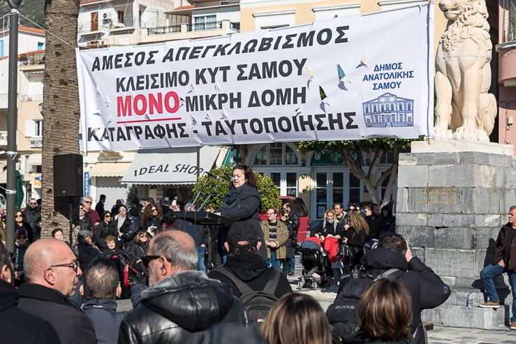Είμαστε εδώ σήμερα, συνεχίζοντας τον αγώνα που δίνουμε εδώ και καιρό για να μείνουν στα χαρτιά τα σχέδιά της κυβέρνησης! Για να μη γίνει το νέο hotspot-κέντρο κράτησης, γιατί θα μονιμοποιηθεί ο εγκλωβισμός, η καταστολή και η απανθρωπιά. Σε συνδυασμό με το νέο νόμο για το άσυλο θα χωριστούν οικογένειες, θα οξυνθεί το πρόβλημα για τους κατοίκους του νησιού και για πρόσφυγες – μετανάστες.