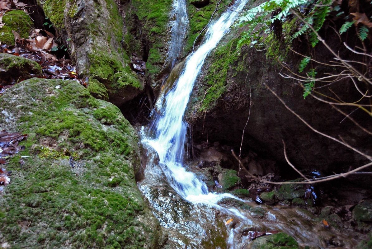 Η ατίθαση παρθένα ομορφιά σε γοητεύει από τα πρώτα βήματα. Τα στοιχεία της φύσης είναι σ’ αυτό τον τόπο έντονα, αλλά σε απόλυτη αρμονία. Πυκνή βλάστηση καλύπτει όλη την πλαγιά και το μονοπάτι οδηγεί σε δάσος με καστανιές πεύκα και ελιές. Αν και είχε μεσημεριάσει ο ήλιος δεν έφτανε στα βήματα μας γιατί ο ουρανός ήταν σκεπασμένος με φυτά και βλάστηση.