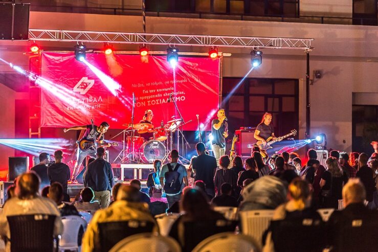 Το Φεστιβάλ άνοιξε με χαιρετισμό από τον Μανώλη Τσακουμάκη, μέλος του Τ.Σ Σάμου της ΚΝΕ, που αρχικάστάθηκε στην ιστορία και το σύνθημα του Φεστιβάλ σημειώνοντας ανάμεσα σε άλλα: