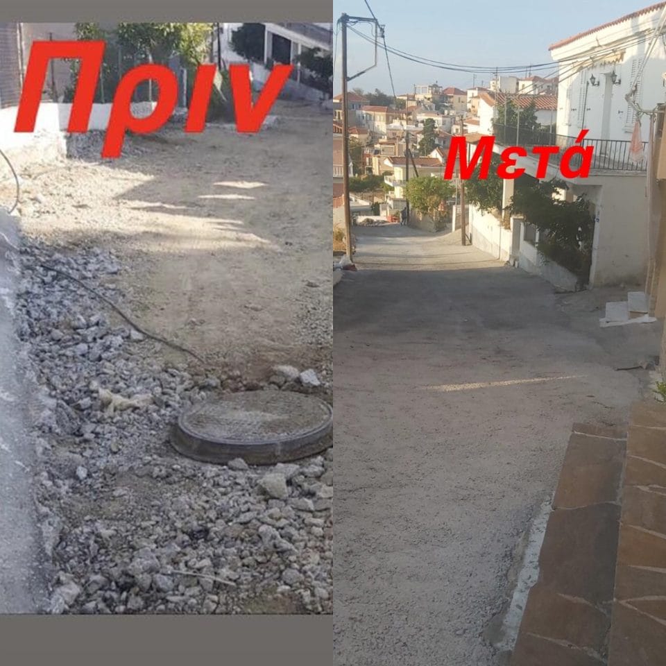 Παράλληλα αποξηλώθηκε το φθαρμένο και επικίνδυνο οδόστρωμα της κατωφέρειας και αντικαταστάθηκε με νέα επίστρωση μπετόν.