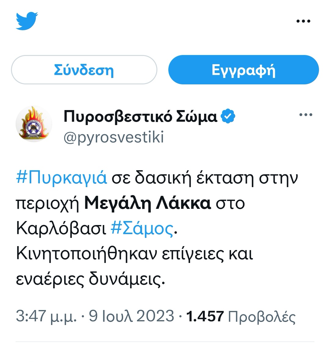 Οριοθετήθηκε η πυρκαγιά που εκδηλώθηκε το μεσημέρι της Κυριακής σε δασική έκταση στο Καρλόβασι της Σάμου.