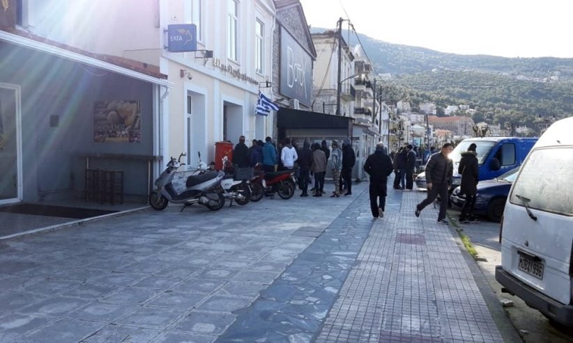 Ουρές από μετανάστες έξω από τα ΕΛΤΑ Σάμου