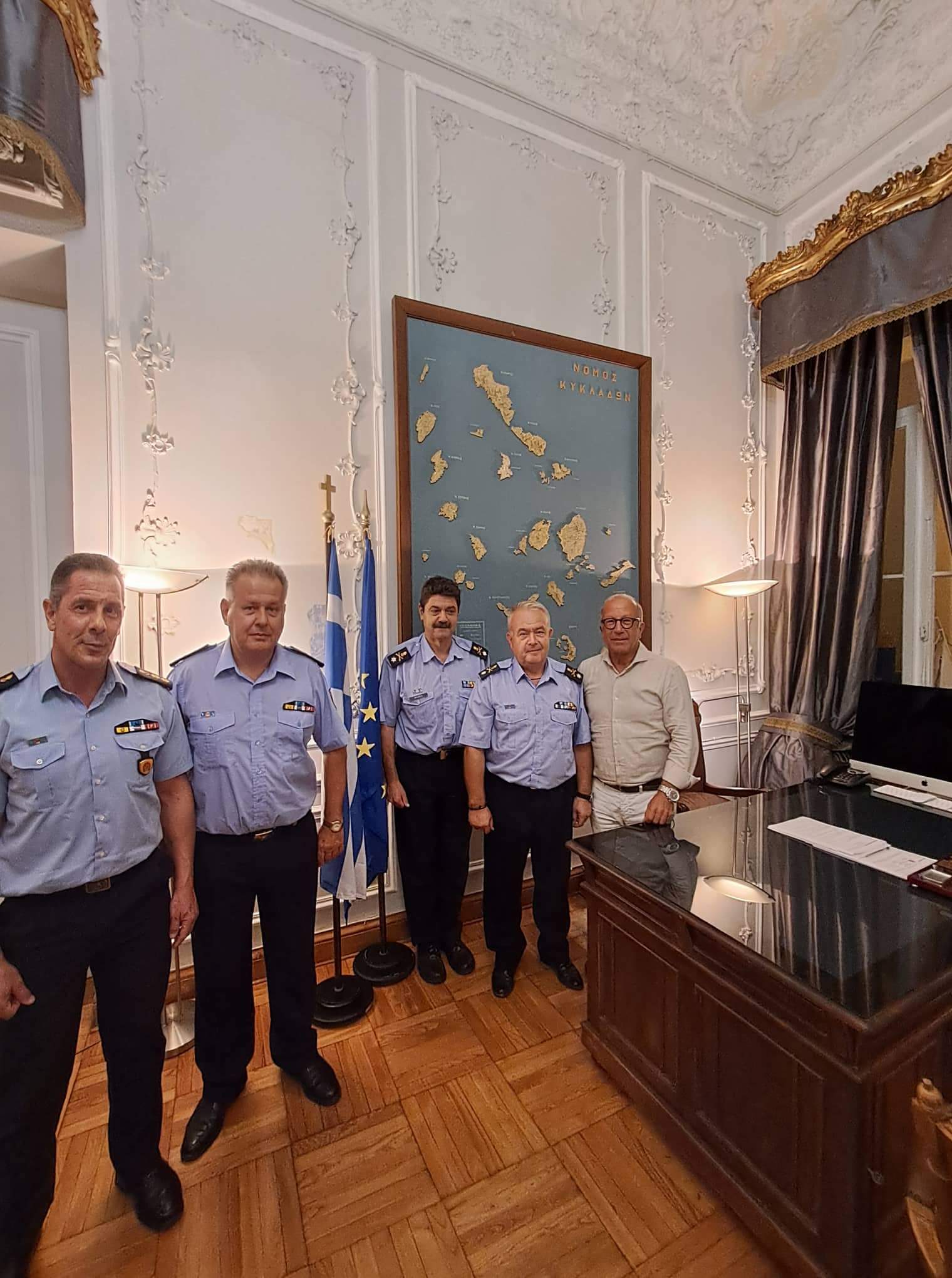 Ο Αναπληρωτής Συντονιστής Πυροσβεστικών Υπηρεσιών Βορείου, Νοτίου Αιγαίου & Κρήτης Αρχιπύραρχος Κωνσταντίνος Δαδούδης, στο πλαίσιο των αρμοδιοτήτων του, που είναι η άμεση επαφή και γνώση του επιχειρησιακού του τομέα, επισκέφτηκε από 15 έως και 20 Σεπτεμβρίου 2022 τα νησιά των Κυκλάδων ΣΥΡΟΣ, ΝΑΞΟΣ, ΑΜΟΡΓΟΣ, ΠΑΡΟΣ ΚΑΙ ΣΑΝΤΟΡΙΝΗ τα οποία ανήκουν στην Περιφερειακή Διοίκηση Πυροσβεστικών Υπηρεσιών Νοτίου Αιγαίου. Συνοδευόταν από τον Περιφερειακό Διοικητή Πυροσβεστικών Υπηρεσιών Νοτίου Αιγαίου Αρχιπύραρχο Νικόλαο Μπάλση.