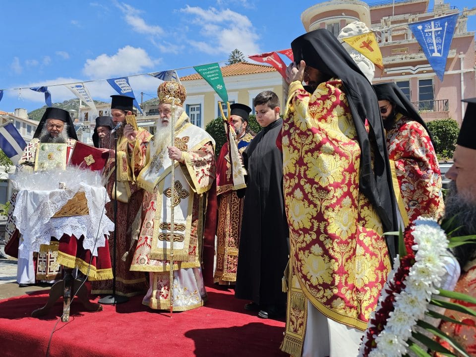 Ο Σεβασμιώτατος Μητροπολίτης Σάμου χοροστάτησε στην ακολουθία, η οποία διεξήχθη σε κλίμα χαράς και πανηγυρισμού για την Ανάσταση του Κυρίου.