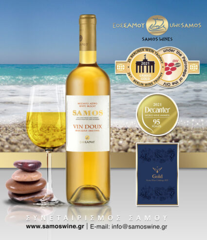 Αξίζει να σημειωθεί πως τη φετινή χρονιά το Samos Vin Doux έχει ήδη τιμηθεί με ακόμη δύο χρυσά διεθνή βραβεία στους διαγωνισμούς DECANTER 2021 και ΒΕRLINER WINE TROPHY 2021, ενά βραβεύεται ανελλιπώς από το 1937 σε κάθε διεθνή διαγωνισμό στον οποίο συμμετέχει.