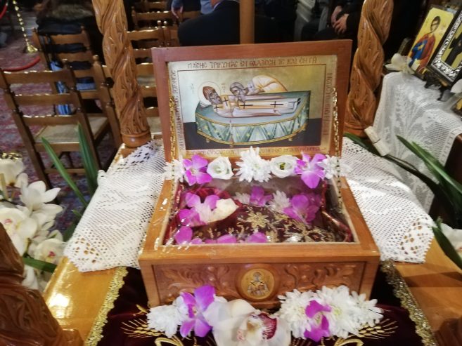 Το πρωινό της Πέμπτης, ανήμερα της γιορτής του Αγίου, τελέστηκε εόρτιος Όρθρος και η Θεία Λειτουργία ιερουργούντος του Αρχιμ. π. Σωτήριου Κοσμόπουλου.