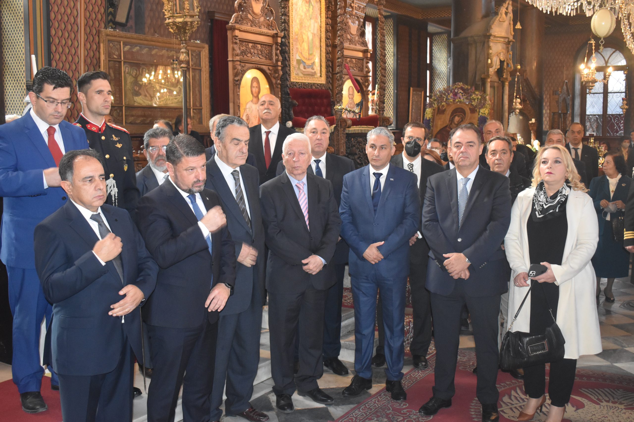 Ο Περιφερειάρχης παρακολούθησε την Επίσημη δοξολογία στον Ιερό Μητροπολιτικό Αγίου Αθανασίου χοροστατούντος του Σεβασμιότατου Μητροπολίτη Μυτιλήνης Ερεσού και Πλωμαρίου κ.κ. Ιακώβου, παρουσία του εκπροσώπου της Κυβέρνησης ΥΦΕΘΑ Νικολάου Χαρδαλιά, του Β’ Αντιπροέδρου της Βουλής των Ελλήνων Χαράλαμπου Αθανασίου και του Βουλευτή Αιτωλοακαρνανίας του ΠΑΣΟΚ- Κινήματος Αλλαγής Δημήτρη Κωνσταντόπουλου. Στη συνέχεια παραβρέθηκε στην Επιμνημόσυνη Δέηση που τελέστηκε στη θέση Κιόσκι και κατέθεσε στέφανο στη μνήμη των Πεσόντων νεκρών για την ελευθερία της πατρίδας και παρακολούθησε την Παρέλαση στη Προκυμαία της Μυτιλήνης.