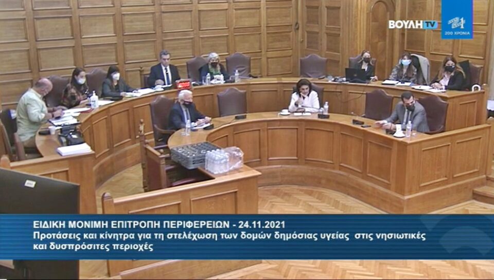Ο Περιφερειάρχης Βορείου Αιγαίου Κωνσταντίνος Μουτζούρης  συμμετείχε στην Συνεδρίαση της Ειδικής Μόνιμης Επιτροπής Περιφερειών της Βουλής στις 24.11.2021  με θέμα συζήτησης :  «Προτάσεις και κίνητρα για τη στελέχωση των δομών δημόσιας υγείας στις νησιωτικές και δυσπρόσιτες περιοχές» .