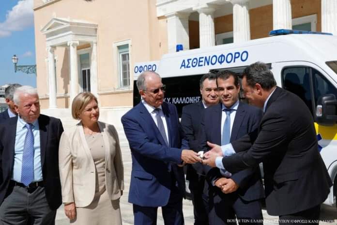Ο Περιφερειάρχης στην παράδοση του ασθενοφόρου από την Βουλή στο ΚΥ Καλλονης