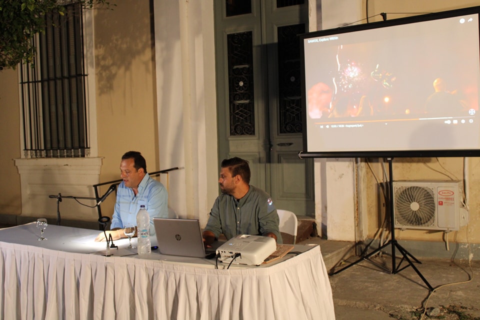 Ο κ. Παπαγεωργίου από τον κήπο της Δημόσιας Κεντρικής Ιστορικής Βιβλιοθήκης Σάμου ανέφερε στους δημοσιογράφους: