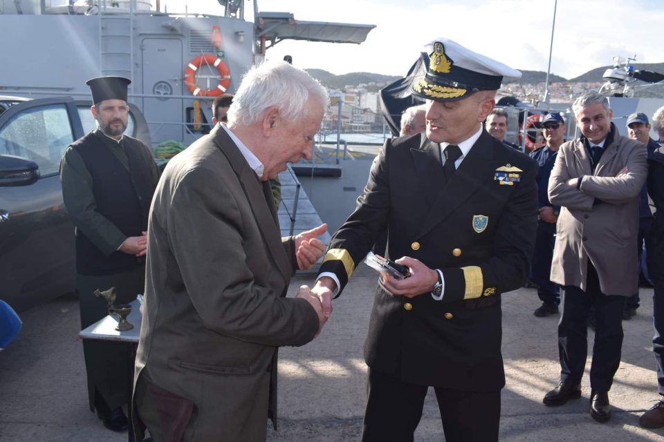 Η τελετή παράδοσης έγινε στον περίφραχτο χώρο του Τελωνείου Μυτιλήνης όπου στεγάζονται υπηρεσίες του Λιμεναρχείου.