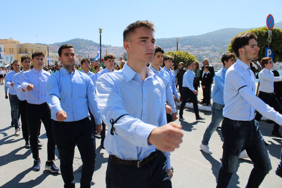 Παρέλασαν με μαύρα περιβραχιόνια οι μαθητές στην Σάμο για την τραγωδία στα Τέμπη