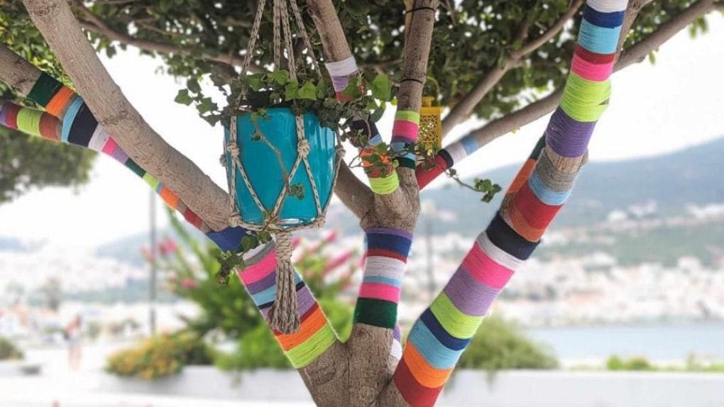 Αυτή τη φορά η πόλη της Σάμου, το Βαθύ, γέμισε με χρώματα, «πλεκτά» δέντρα που ομορφαίνουν τον πλακόστρωτο δρόμο της παραλιακής, σκορπάνε με μαγικό τρόπο χαμόγελα στους περαστικούς και συνάμα στέλνουν ένα υπέροχο μήνυμα.