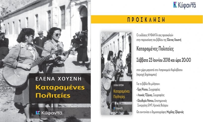 Το βιβλίο της Έλενας Χουσνή «Καταραμένες Πολιτείες» θα παρουσιάσουν οι Εκδόσεις ΚΥΦΑΝΤΑ, το Σάββατο, 23 Ιουνίου, στις 20:00, στο χώρο μπροστά στο Λεπροκομείο Καρλοβάσου, στην περιοχή Ξηρόκαμπος.