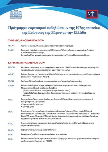 Το επίσημο Πρόγραμμα εκδηλώσεων της 107ης επετείου της Ενώσεως της Σάμου με την Ελλάδα, όπως οριστικοποιήθηκε από το τμήμα δημοσίων σχέσεων, Ιδιαίτερο Γραφείο της Προεδρίας της Δημοκρατίας.