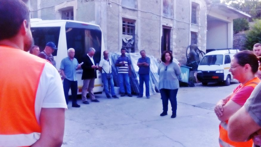 Οι υποψήφιοι συζήτησαν με τους εργαζόμενους την αναγκαιότητα συλλογικής διεκδίκησης μαζικών προσλήψεων για την κάλυψη όλων των αναγκών του δήμου με εργαζόμενους με μόνιμη και σταθερή δουλειά με δικαιώματα, για μέτρα προστασίας της υγείας των εργαζόμενων.