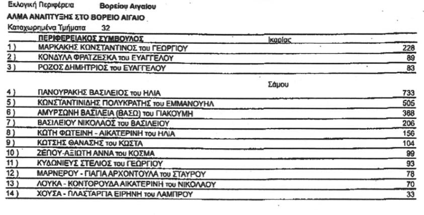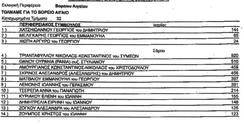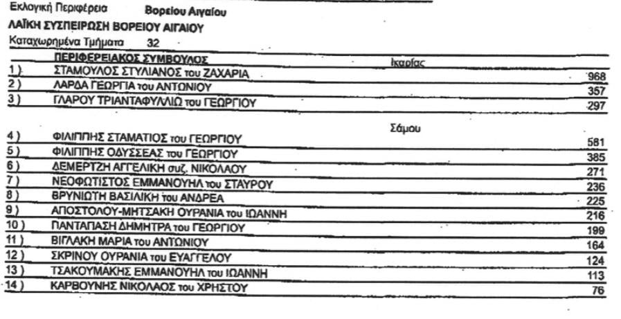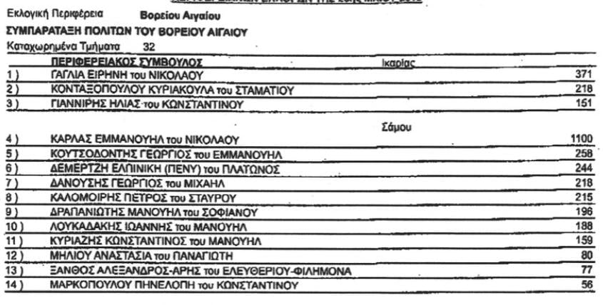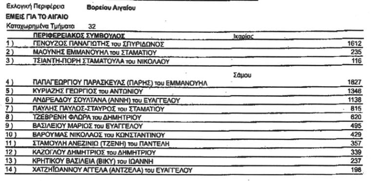 Ολοκληρώθηκε η διαδικασία σταυροδοσίας των υποψηφίων περιφερειακών συμβούλων που πήραν μέρος στην εκλογική διαδικασία της 26ης Μαΐου. Το «Σαμιακόν Βήμα» δημοσιεύει τα τελικά, επίσημα αποτελέσματα της σταυροδοσίας, για τους 7 συνδυασμούς, σε Σάμο και Ικαρία.
