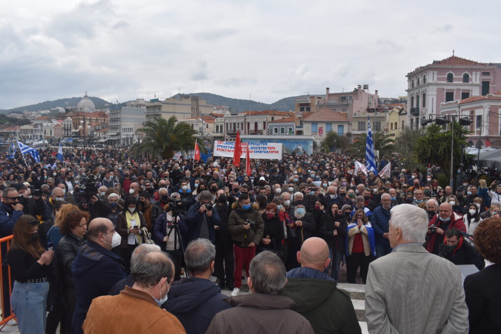 Σε συνέχεια των αποφάσεων του Περιφερειακού Συμβουλίου, πραγματοποιήθηκαν την Τετάρτη 23.02.2022  δυο μεγαλειώδες συγκεντρώσεις σε Μυτιλήνη και Χίο, με χιλιάδες πολίτες να διατρανώνουν την αντίθεση τους στην κατασκευή δομών και  υπερδομών στα νησιά μας.