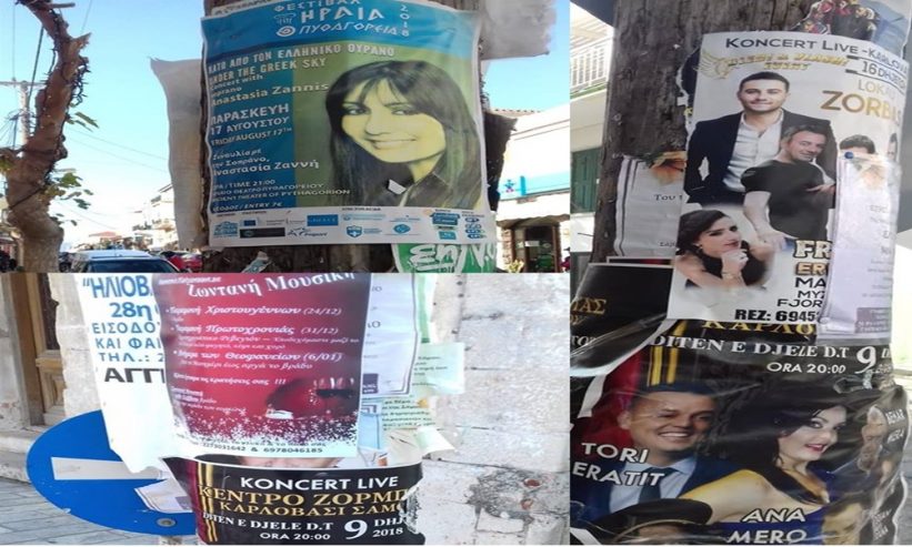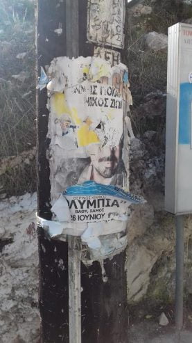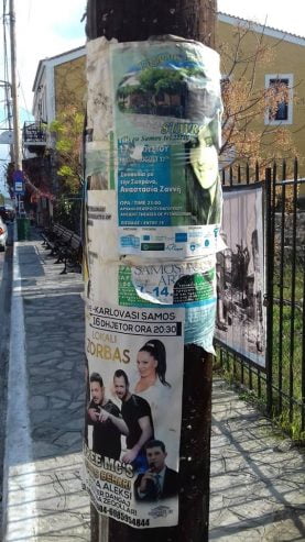 Ο λόγος, για την παράνομη αφισοκόλληση σε όλες της δημοτικές ενότητες του δήμου της Σάμου που τείνει να γίνει ανεξέλεγκτη. Παντού αφίσες: στις κολώνες της ΔΕΗ, σε τοίχους, σε κάγκελα σχολείων, σε στάσεις λεωφορείων, σε κλειστά καταστήματα.Παντού!