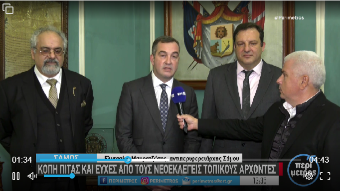 Τις ευχές του αντιπεριφερειάρχης Σάμου Ελισσαίου Μαυρατζώτη, του αντιπεριφερειάρχη Τουρισμού Βορείου Αιγαίου Γιάννη Καλτάκη αλλά και του Πάρη Παπαγεωργίου, νέου δημάρχου Ανατολικής Σάμου μετέφερε μέσω της Περιμέτρου η ΕΡΤ3.