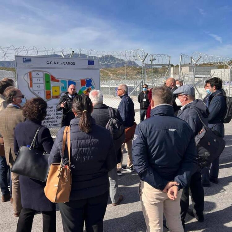 Πρέσβεις και αντιπροσωπείες πρεσβειών χωρών της ΕΕ επισκέφθηκαν την Πέμπτη τη νέα Κλειστή Ελεγχόμενη Δομή στη Σάμο μετά από πρωτοβουλία της Σλοβενικής Προεδρίας του Συμβουλίου της Ευρωπαϊκής Ένωσης, όπου ξεναγήθηκαν στις εγκαταστάσεις από τον Γενικό Γραμματέα Υποδοχής Αιτούντων Άσυλο, Μάνο Λογοθέτη.