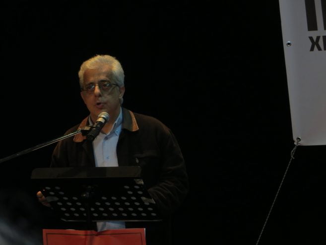 Αναφερόμενος στην πιθανότητα πολεμικής εμπλοκής, το μέλος του ΠΓ κάλεσε σε πάλη ενάντια σε κάθε επιδίωξη αλλαγής συνόρων και διεθνών συνθηκών. Υπογράμμισε ότι οι κομμουνιστές θα πρωτοστατήσουν στην υπεράσπιση της εδαφικής ακεραιότητας, των κυριαρχικών δικαιωμάτων, για να συντριβεί ο όποιος ξένος εισβολέας, αν επιτεθεί στην Ελλάδα. Τόνισε ότι ο λαός δεν πρέπει να δείξει καμιά εμπιστοσύνη στην αστική κυβέρνηση που θα κάνει τον πόλεμο, να μη δείξει ανοχή στην αστική τάξη, που συμμετέχει στον πόλεμο για τα δικά της συμφέροντα. Ανέδειξε την ανάγκη αυτή η πάλη της εργατικής τάξης και των λαϊκών στρωμάτων να οδηγήσει στην ανατροπή της σημερινής εξουσίας, στην κατάκτηση της εργατικής εξουσίας, ώστε ο λαός να ζήσει με ευημερία, χωρίς πολέμους για τα κέρδη των καπιταλιστών.
