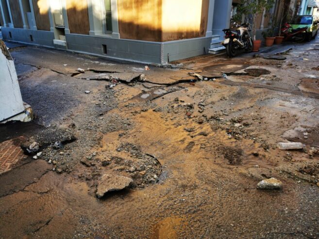 Προβλήματα έφερε η χθεσινή κακοκαιρία στη πόλη της Σάμου, καθώς η ισχυρή βροχόπτωση που σημειώθηκε κατά την διάρκεια της νύχτας, είχε σαν αποτέλεσμα να παρατηρηθεί καθίζηση του οδοστρώματος στη οδό Εμμανουήλ Σοφούλη στο στενό δηλ προς το δημοτικό γηροκομείο Σάμου.