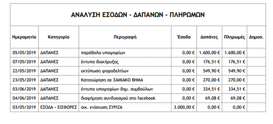 Προεκλογικές δαπάνες και έσοδα του συνδυασμού «η Σάμος αλλάΖΕΙ»