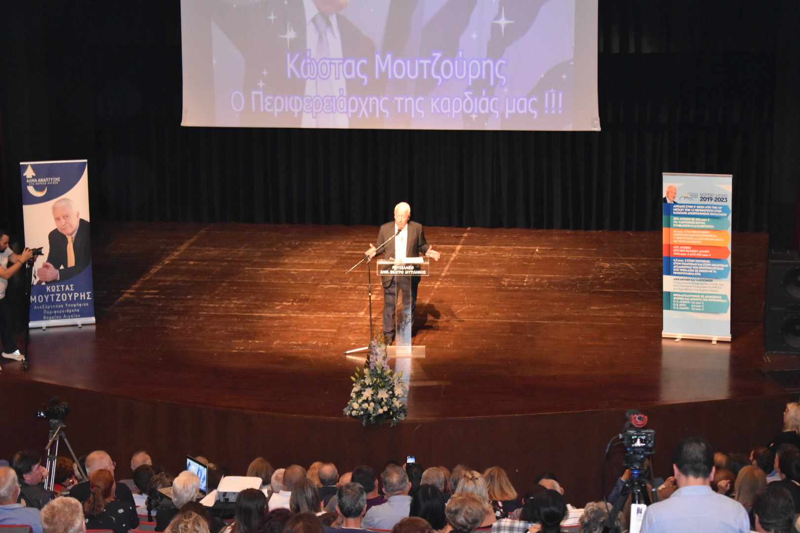 Στη συνέχεια αναφέρθηκε στην εσκεμμένη και απαράδεκτη  παραπληροφόρηση που επιχειρείται από το αντίπαλο ψηφοδέλτιο σχετικά με την υλοποίηση των έργων, θυμίζοντας πως όλοι οι υπεύθυνοι που διοικούσαν την Περιφερειακή Αρχή και την είχαν καταστίσει ουραγό λόγω της χαμηλότατης απορρόφησης των κονδυλίων μέχρι το 2019, ακριβώς οι ίδιοι σήμερα είναι υποψήφιοι με τον στρατηγό Στεφανή και τολμούν να κάνουν κριτική η οποία θα πρέπει να στραφεί στον εαυτό τους και όχι στην Περιφερειακή Αρχή Μουτζούρη.