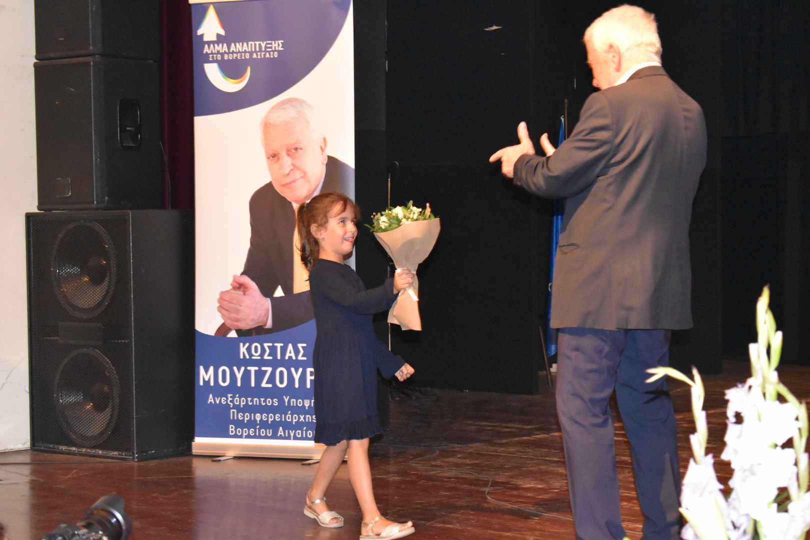 Ο Περιφερειάρχης έκλεισε την ομιλία του τονίζοντας ότι ήταν και θα είναι πάντα παρών αγωνιζόμενος για τα δίκαια συμφέροντα του λαού του Βορείου Αιγαίου και μόνο.