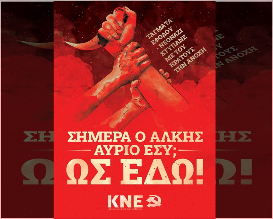 H ΚΝΕ καλεί όλους τους νέους και τις νέες της Σάμου, μαθητές, φοιτητές, εργαζόμενους, όλους τους αθλητικούς Συλλόγους, τους αθλητές και τις αθλήτριες, να πάρουν μέρους στις πολύμορφες πρωτοβουλίες που διοργανώνει, με αφορμή την αποτρόπαια δολοφονία του 19χρονου Άλκη στη Θεσσαλονίκη.