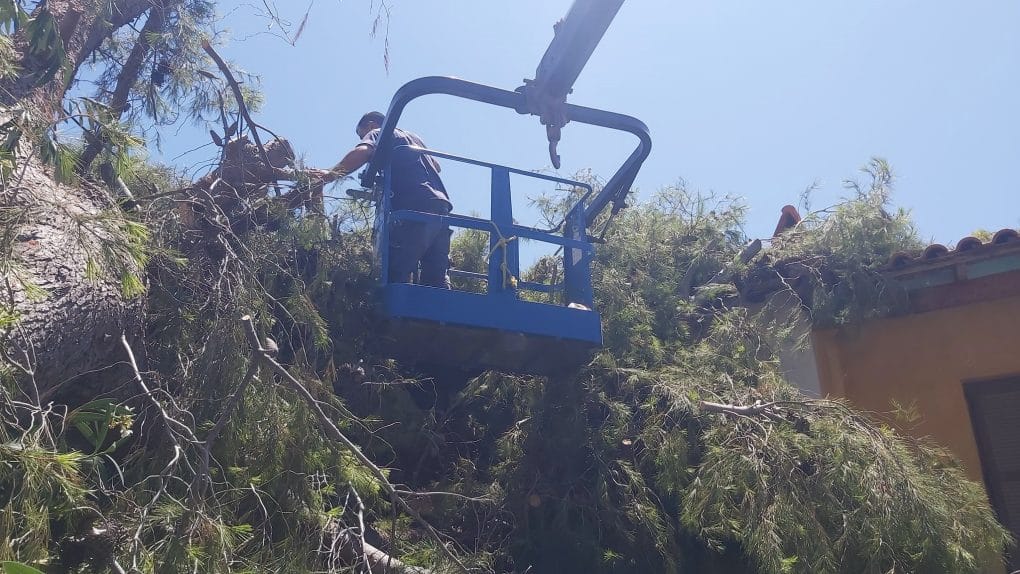 Πτώση μεγάλου πεύκου στην Κοινότητα Πυθαγορείου