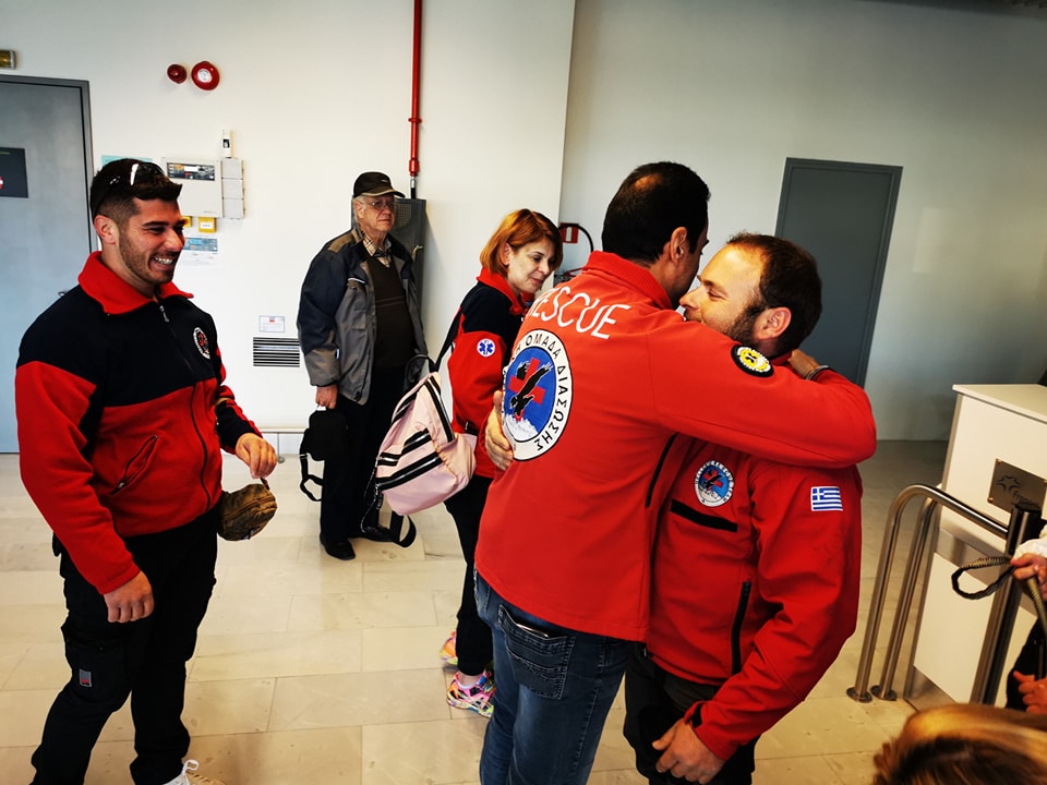 Στις αφίξεις του αερολιμένα είχαν συγκεντρωθεί μέλη της Τοπικής ΕΟΔ με επικεφαλής τον Δημήτρη Καλατζή, όπου εκτυλίχθηκαν πραγματικά συγκινητικές στιγμές με τους διασώστες της ΕΟΔ, τη σύζυγο του Θανάση, την Speedy, να αγκαλιάζονται σφιχτά και να γίνονται ΕΝΑ!!.