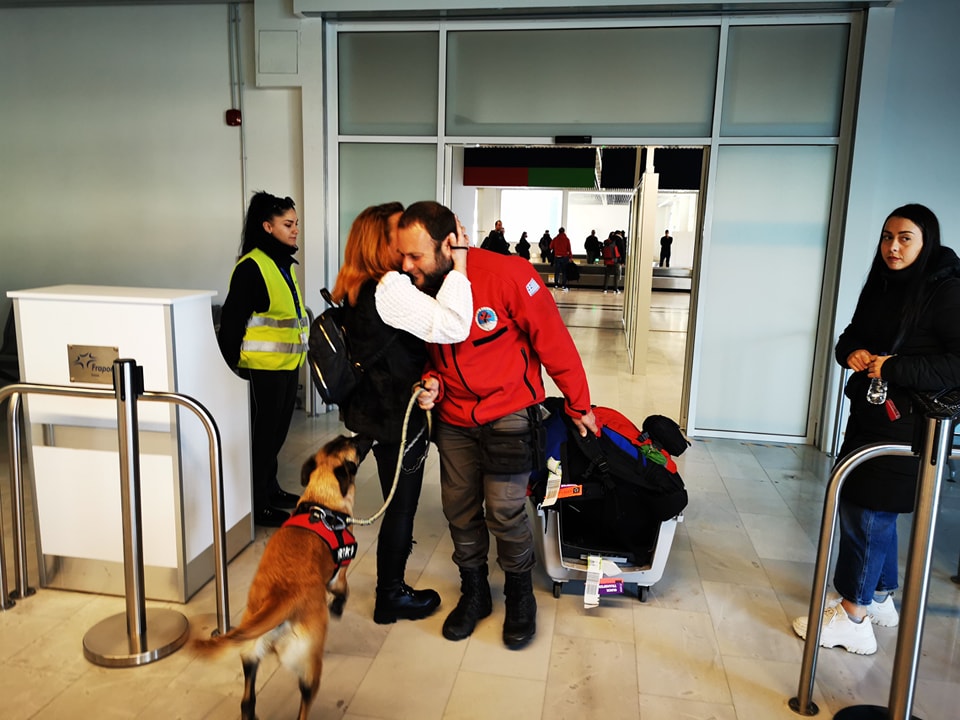 Επέστρεψαν από την Τουρκία, ο διασώστης, Θανάσης Πραξούλης και η Speedy, ο σκύλος έρευνας της Ελληνικής Ομάδας Διάσωσης Παράρτημα Σάμου .