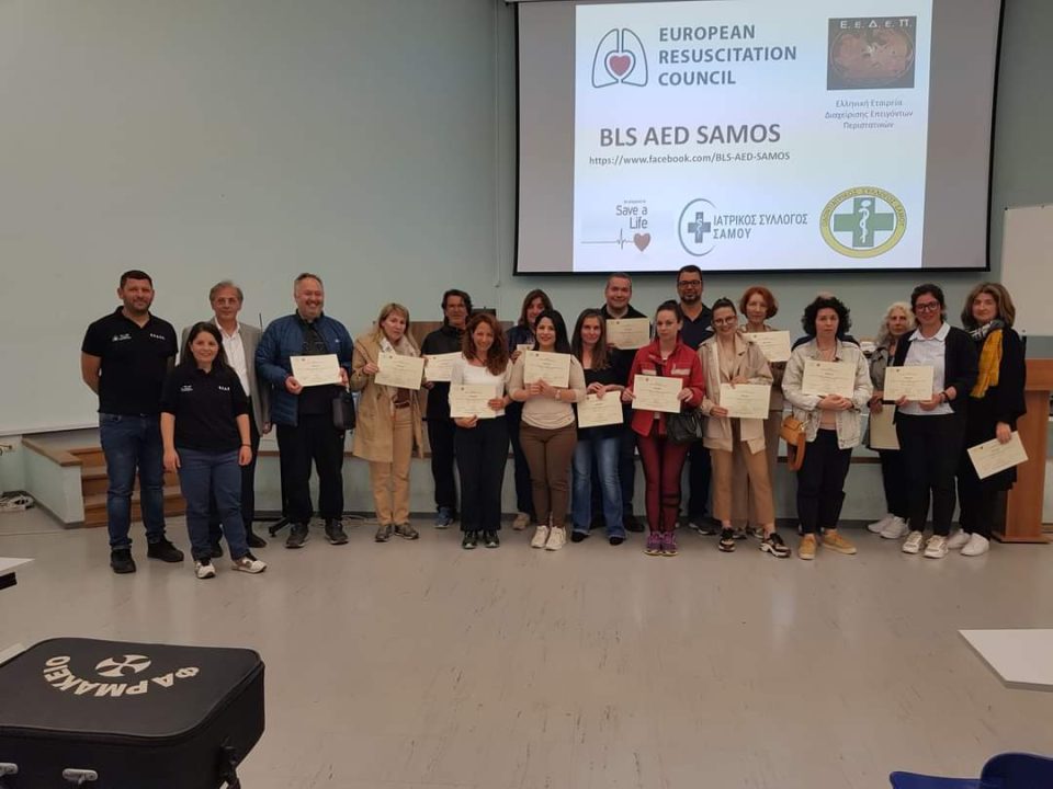Τέλος θα θέλαμε να ευχαριστήσουμε ιδιαιτέρως τον καρδιολόγο κ. Χατζηανδρέου Πέτρο, την κα Λιόντα Ειρήνη και κ. Χαραλάμπους Ιωάννη εκπαιδευτές της BLS/AED Σάμος που αποτελείται από την Ελληνική Εταιρεία Διαχείρισης Επειγόντων Περιστατικών