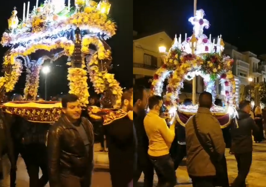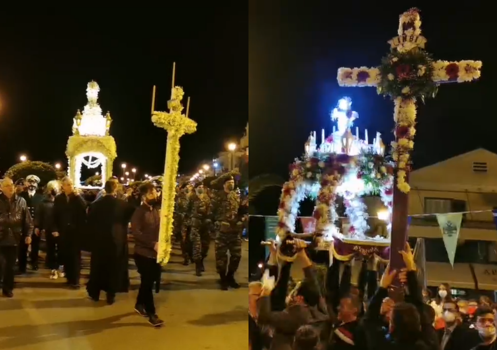 Οι ιερείς, οι πιστοί, οι ιεροψάλτες, τα παιδιά με τα αναμμένα κεριά στα χέρια, τα νεαρά κορίτσια ως άλλες μυροφόρες του Ιησού ακολούθησαν ψάλλοντας τα εγκώμια στη περιφορά των Επιταφίων στους δρόμους, μέχρι να συναντηθούν όλοι μαζί στην κεντρική πλατεία.