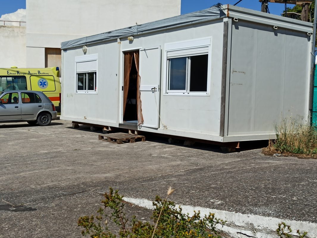 Οι διασώστες του ΕΚΑΒ Σάμου ,σήμερα, φιλοξενούνται σε τριτοκοσμικές συνθήκες σε κοντέινερ στον αύλειο χώρο του τμήματος αγροτικής ανάπτυξης στη περιοχή της Αγίας Ειρήνης.