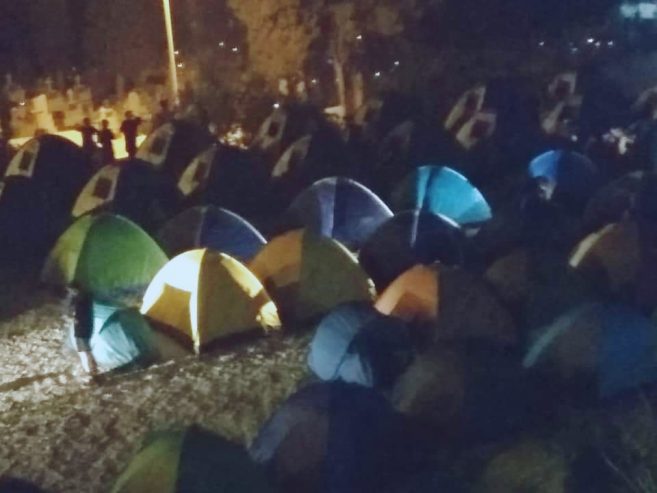 Στο οικόπεδο ήδη έχουν στηθεί σκηνές, ώστε να παραμείνουν προσωρινά για 3 με 4 ημέρες έως ότου ολοκληρωθούν οι εργασίες καθαρισμού εντός του καμμένου χώρου από την πρόσφατη πυρκαγιά στο Κέντρο Υποδοχή και Ταυτοποίησης Σάμου.