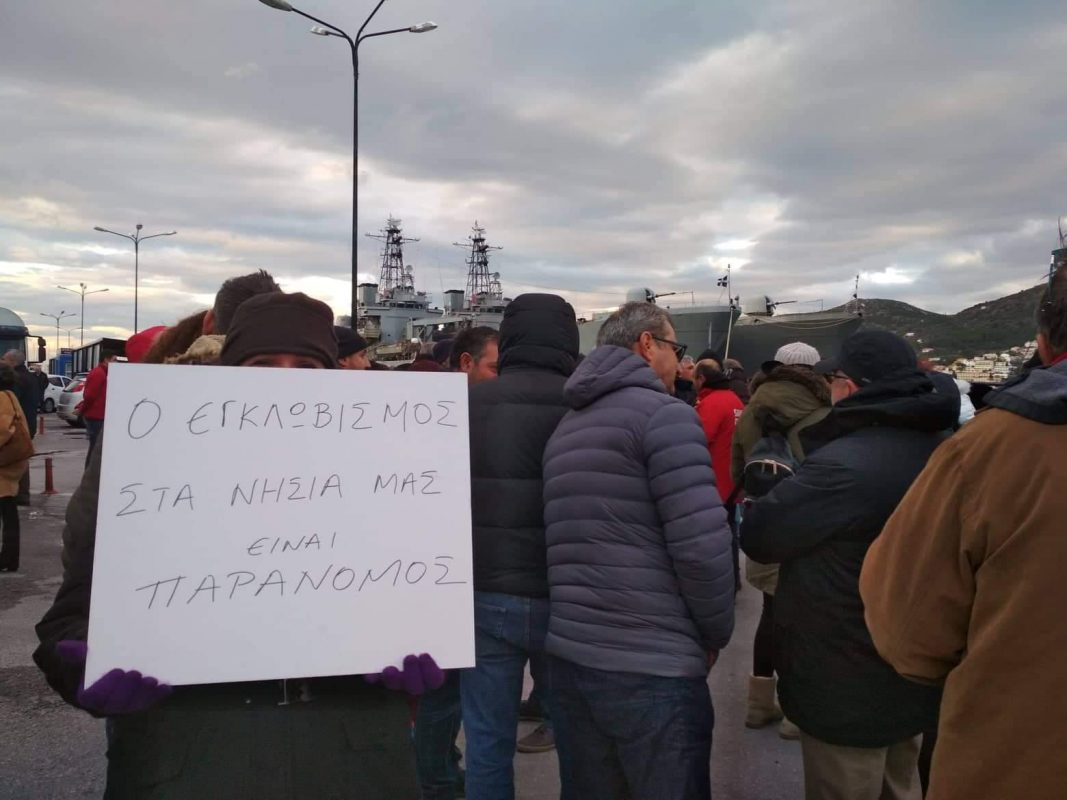 Συγκέντρωση διαμαρτυρίας για το μεταναστευτικό και προσφυγικό ζήτημα πραγματοποιήθηκε σήμερα το απογευμα, απο τον Δήμο Ανατολικής Σάμου, στο λιμάνι του Μαλαγαρίου, με αφορμή την παρουσία των δυο αρματαγωγών πλοίων στο λιμάνι του νησιού.